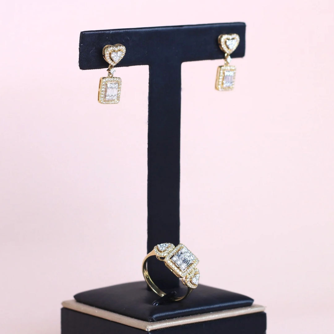 The heart and square illusion set offers a striking balance between romance and modern sophistication. The heart shape brings warmth and emotional meaning to the design, while the square shape adds structure and contemporary flair. The illusion setting amplifies the brilliance and visual size of the diamonds, making the design even more eye-catching.