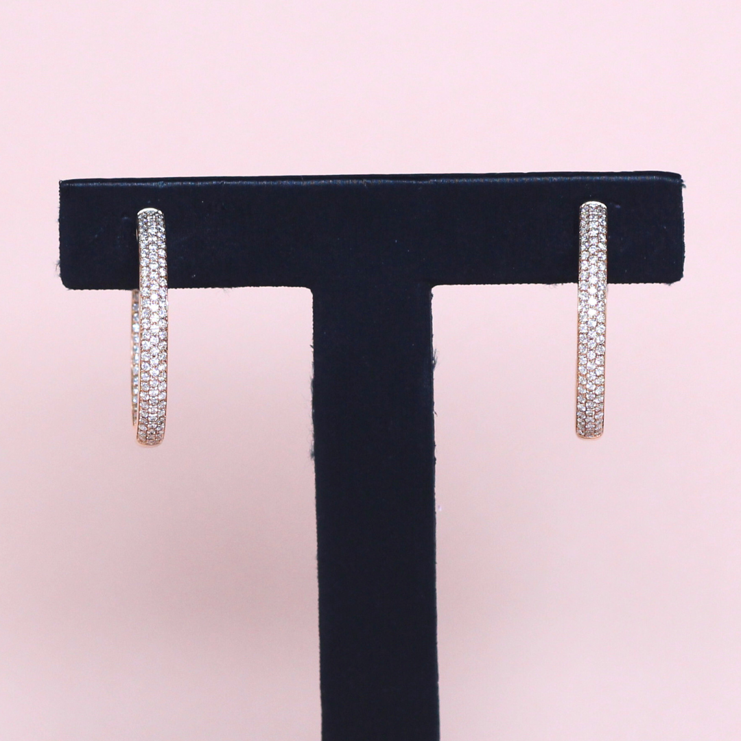 "The Alameda" hoop earrings are a luxurious blend of classic design and modern sophistication. Featuring 1.04 carats of dazzling diamonds, these earrings are designed with an elegant "in & out" setting, where diamonds are meticulously placed on both the inside and outside of the hoop. This unique setting maximizes the sparkle, ensuring that these earrings shine from every angle.