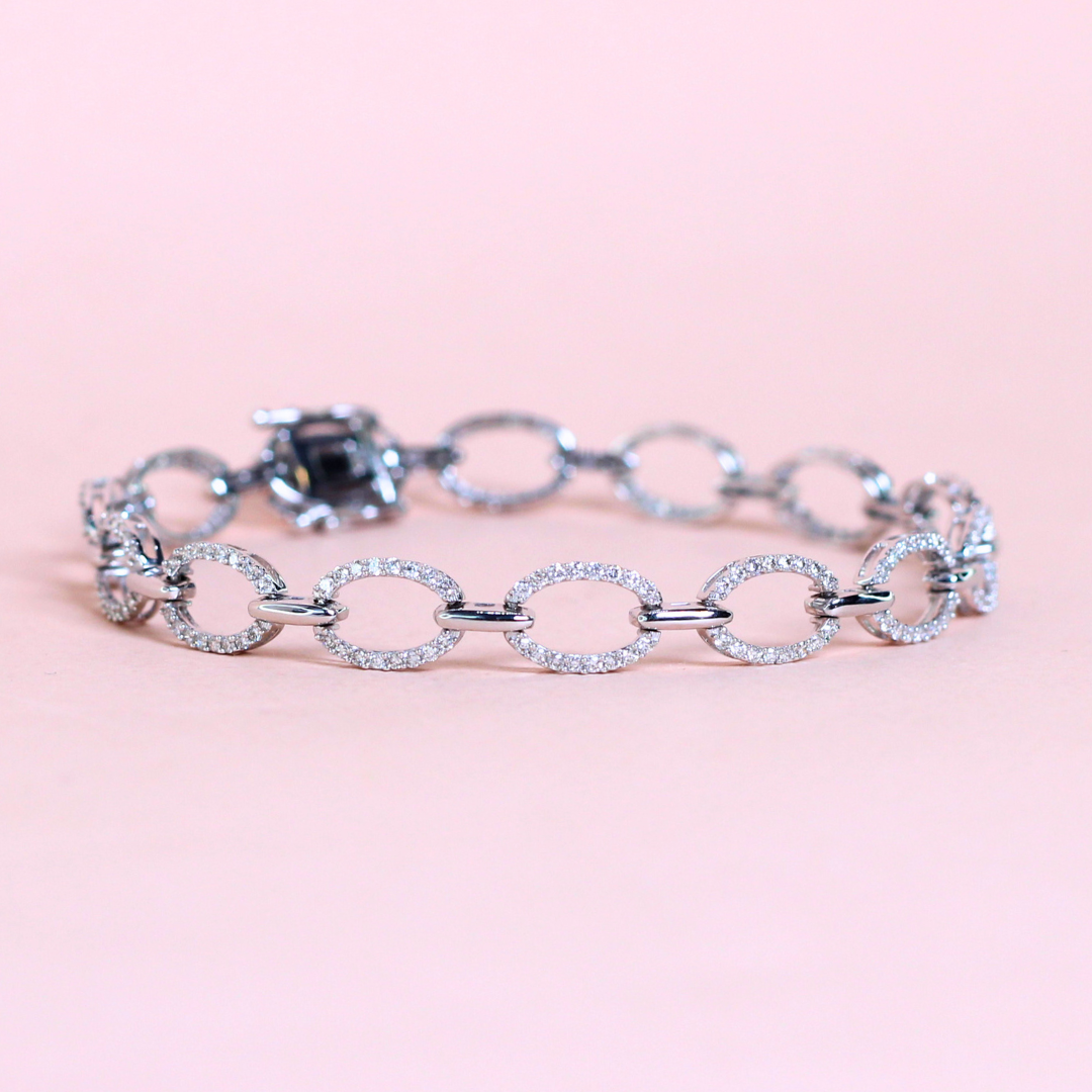 Sleek and versatile, this 1.15-carat Link Bracelet combines modern design with timeless elegance. Each polished link is accented with sparkling diamonds, creating a graceful balance of brilliance and sophistication. Perfect for layering or wearing on its own, it’s a classic versatile piece for everyday.