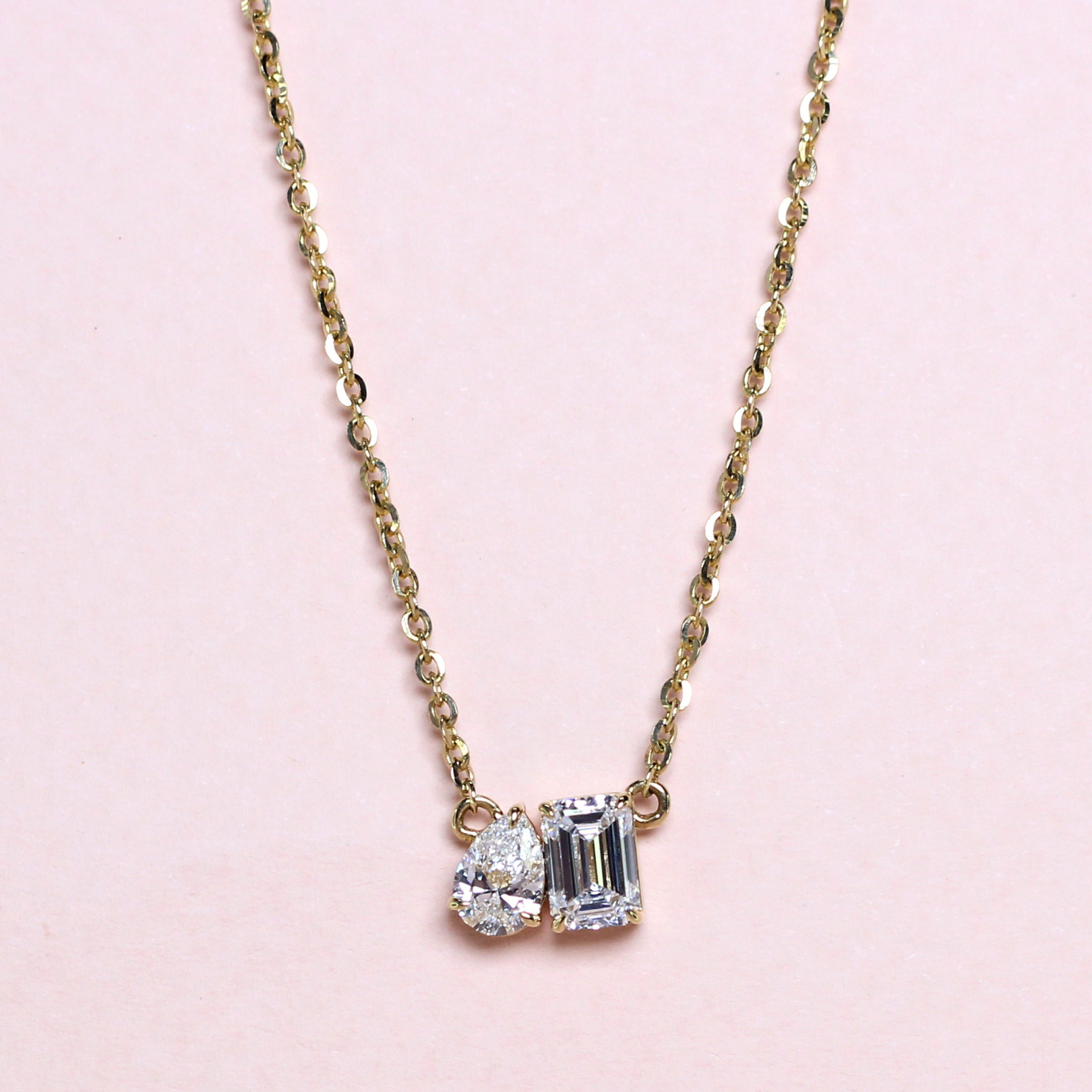 This 1.41cts Toi et Moi lab-grown diamond necklace captures the quiet harmony of two perfectly balanced stones. Each gem mirrors the other’s brilliance while maintaining its own distinct shape and presence. Set in a refined design that feels both modern and meaningful, it symbolizes connection, individuality, and the beauty of shared stories.