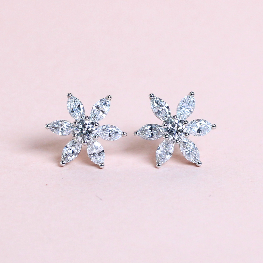 The 1.44ct Rositas Diamond Earrings, set in platinum, are a captivating blend of timeless elegance and enchanting floral-inspired motif. These earrings feature the signature "Rositas" arrangement, which highlights the diamonds' brilliance and creates a stunning floral design.
