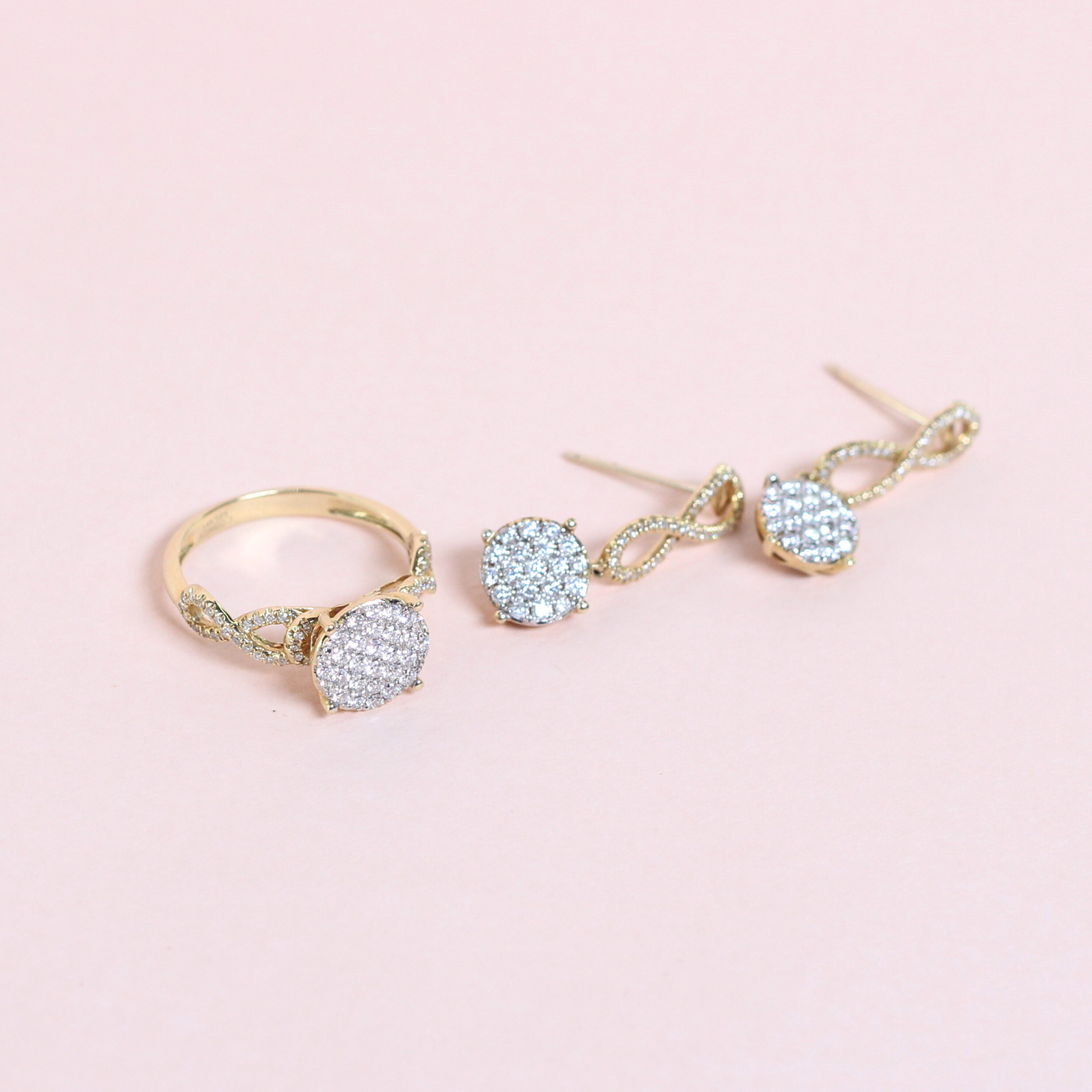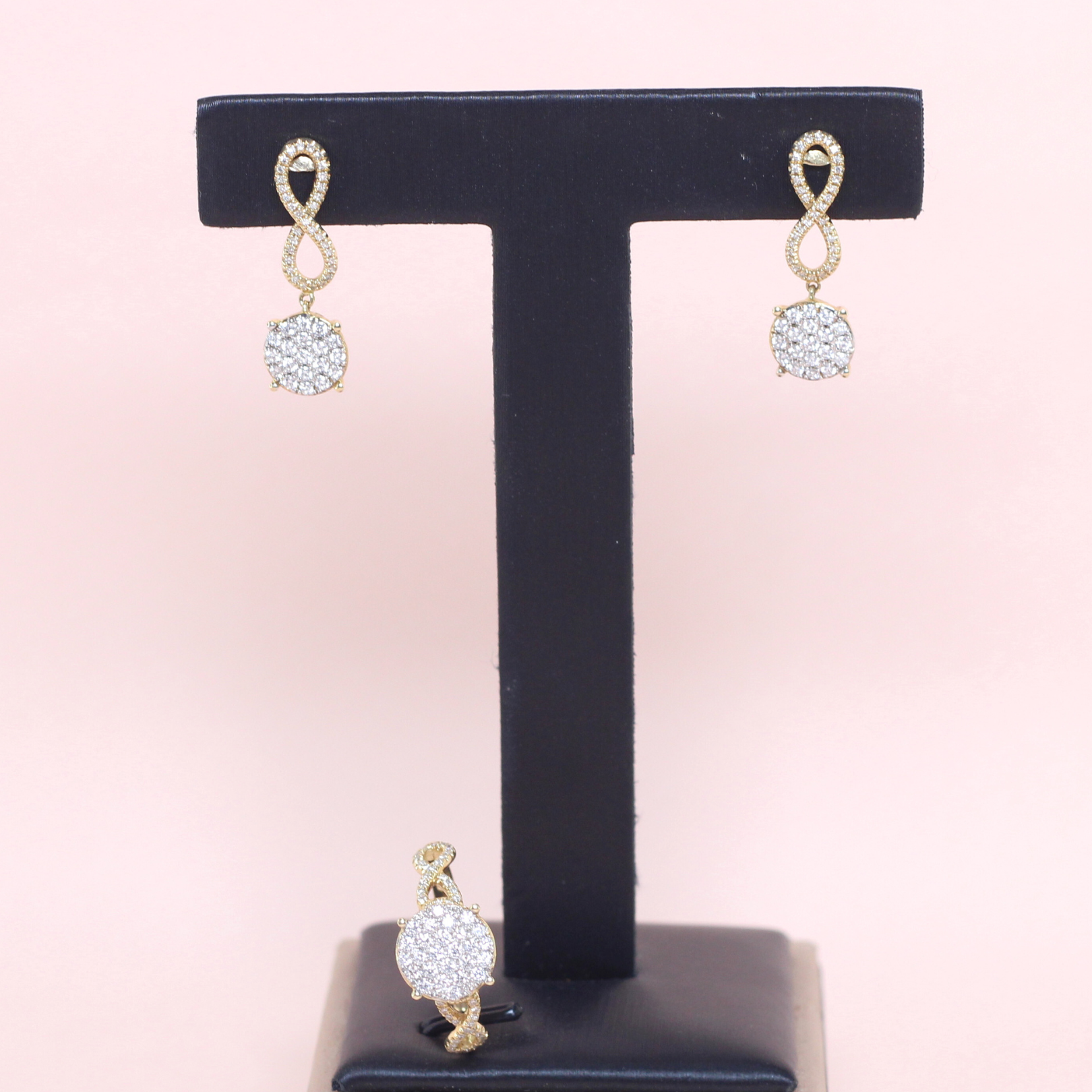The Infinity Illusion set includes a ring and a pair of earrings, each featuring a captivating illusion setting that creates the appearance of larger, continuous diamonds. The infinity motif symbolizes everlasting love and endless elegance, making this set a meaningful and stylish addition to any jewelry collection.