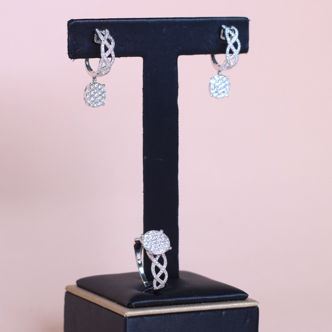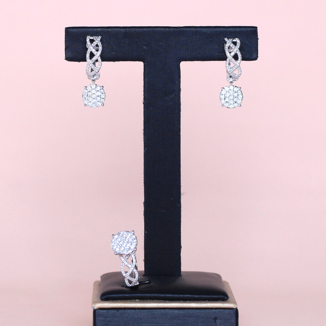 This 1.58-carat round diamond illusion set features a timeless design with striking brilliance and movement. Each piece is crafted with expertly arranged diamonds that form the look of larger center stones, giving maximum sparkle in an elegant, lightweight silhouette.