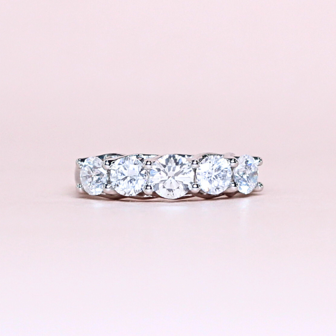 A beautifully balanced piece that exudes timeless elegance and sophistication. Featuring five sparkling diamonds set in a sleek band, this ring symbolizes love, commitment, and harmony, making it an ideal choice for weddings special occasions.