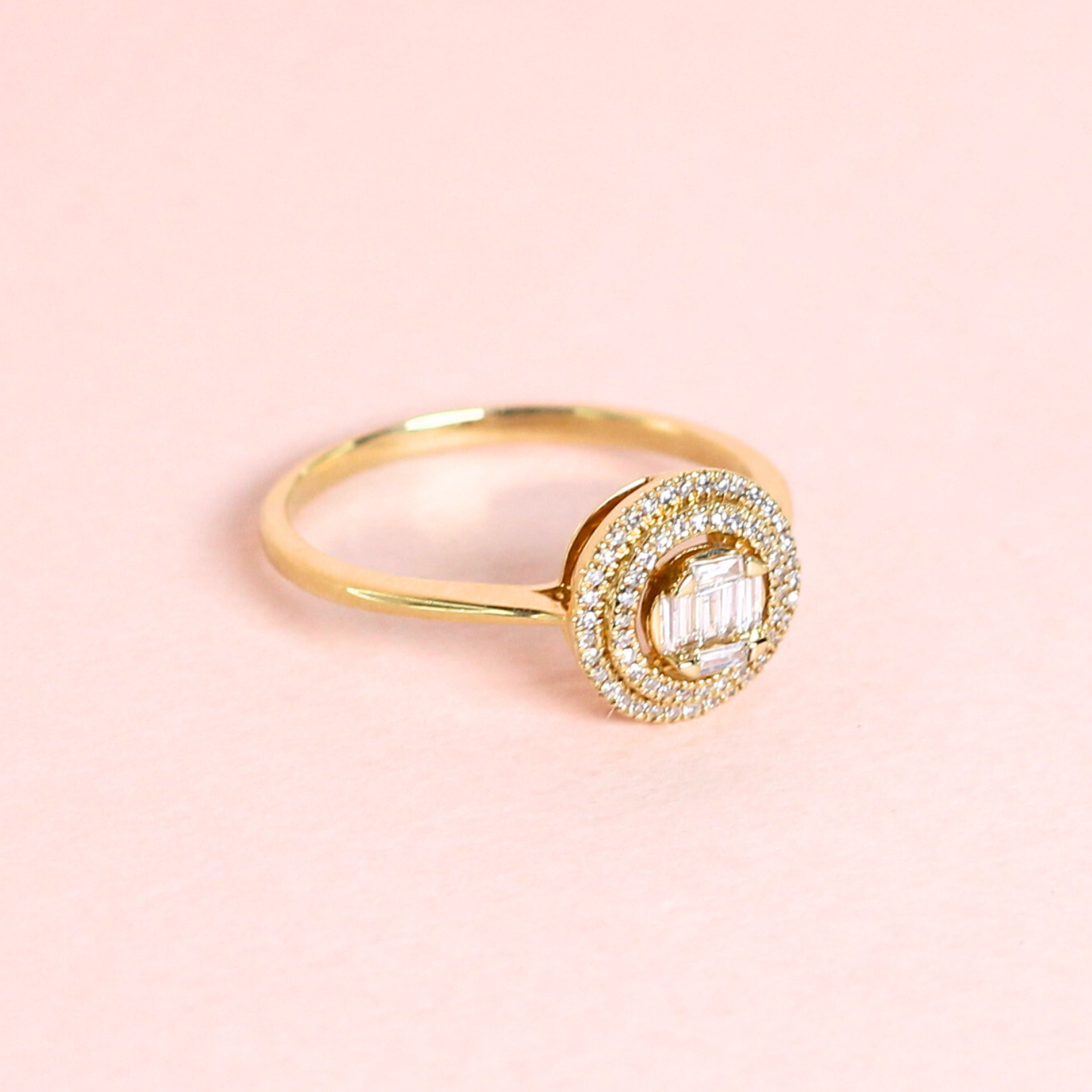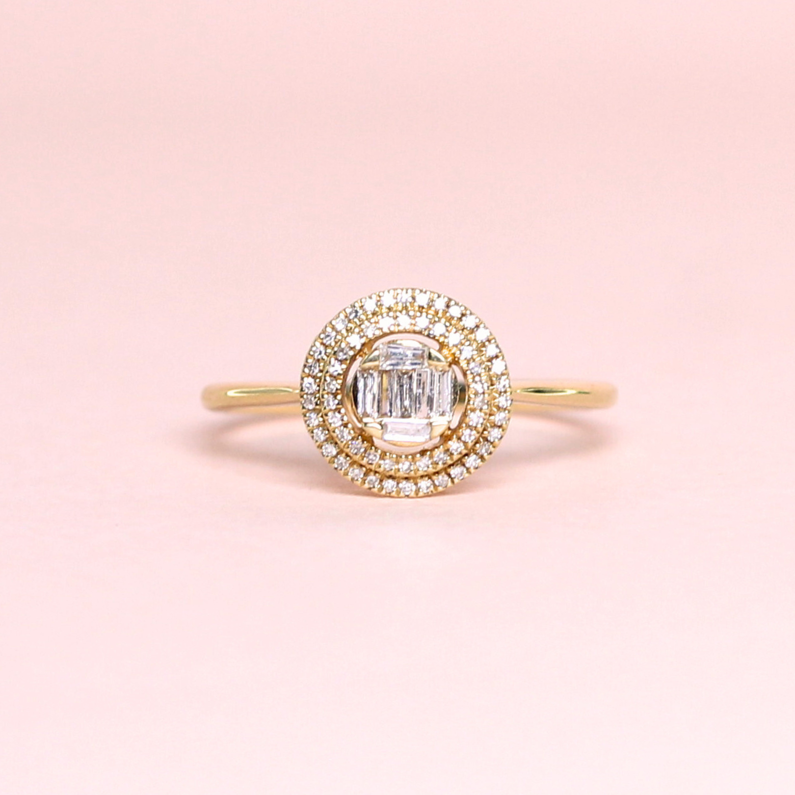 This illusion center engagement ring with a double halo is a stunning piece that combines innovative setting techniques with classic design elements to create a truly remarkable and dazzling ring.