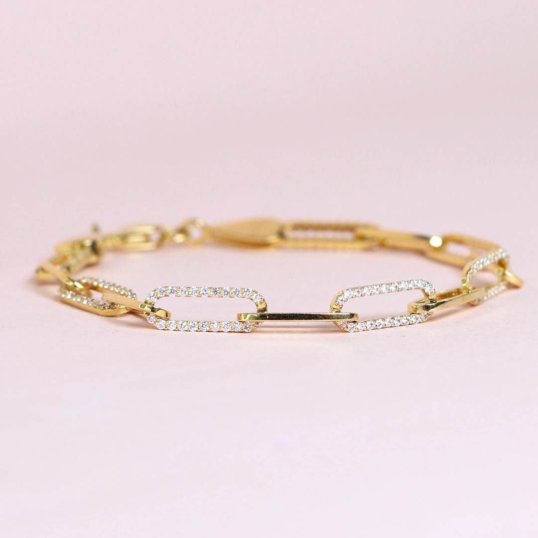 Effortlessly elegant, this linked bracelet boasts a sleek design that adds a touch of sophistication to any outfit.