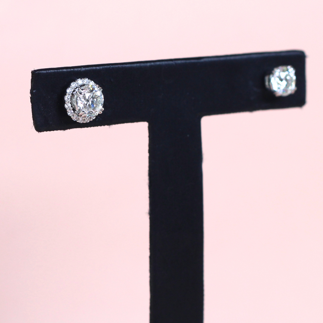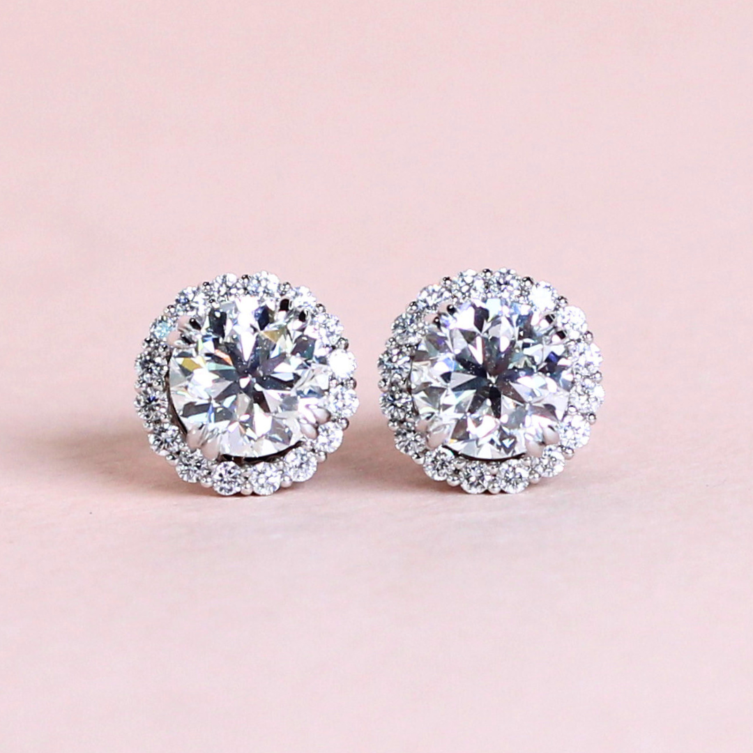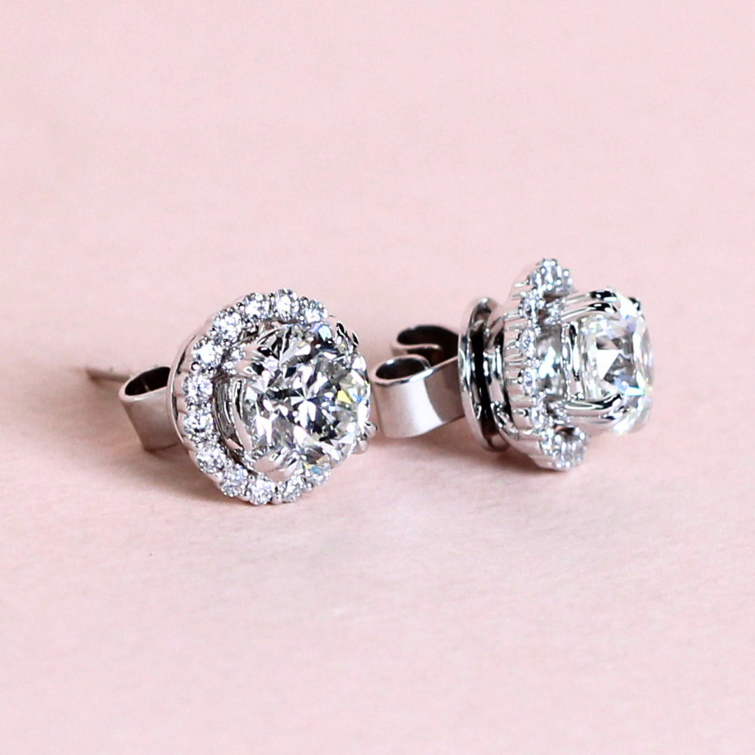 Versatile and radiant, these 2.32-carat round cut stud earrings are designed to shine in more ways than one. Featuring a classic solitaire look, each stud comes with a detachable diamond halo, allowing you to switch from a timeless minimalist style to a more glamorous, light-catching silhouette. A refined choice for everyday elegance or elevated occasions.