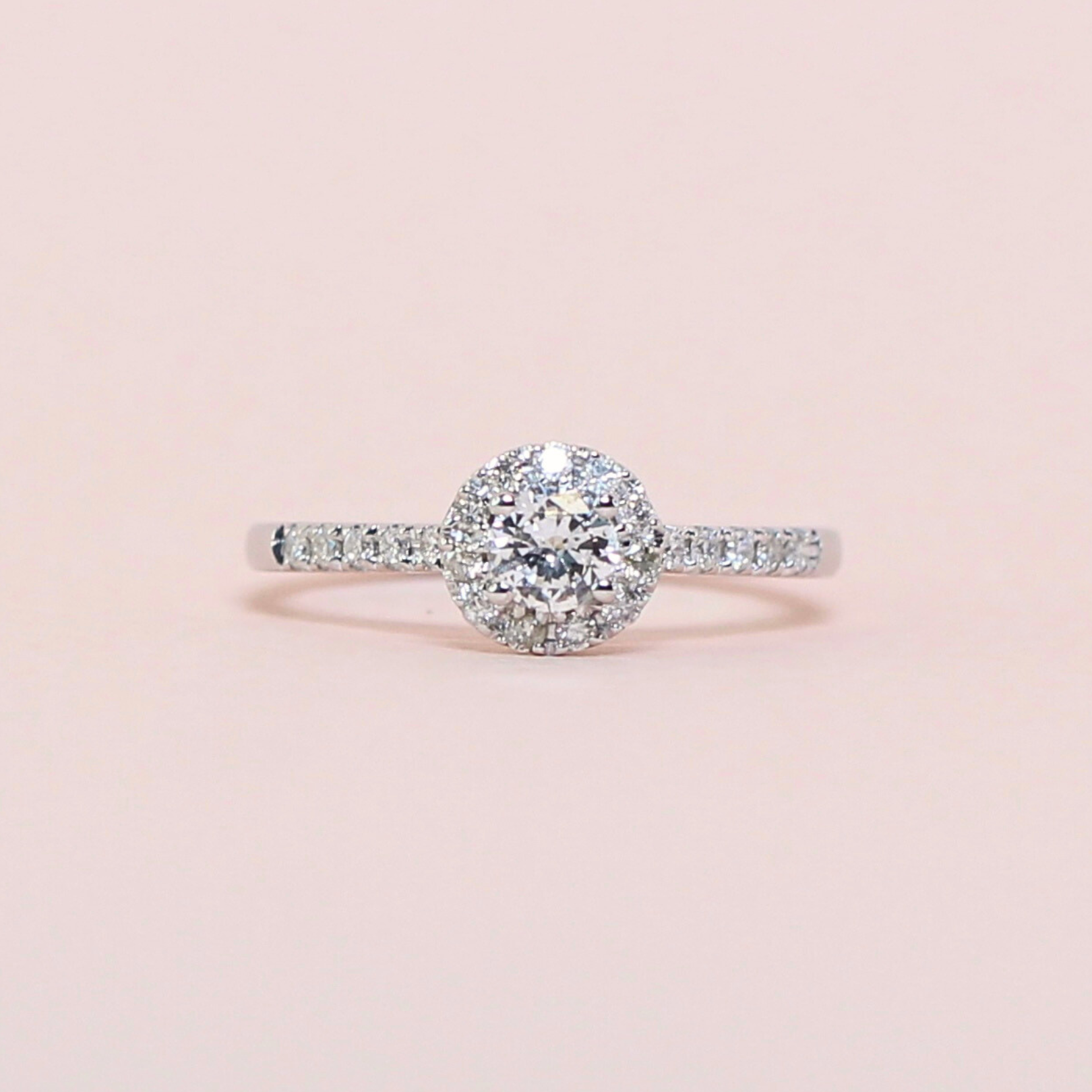 The best way to create the illusion of a bigger diamond. A dainty ring that is sure to be eye-catching.