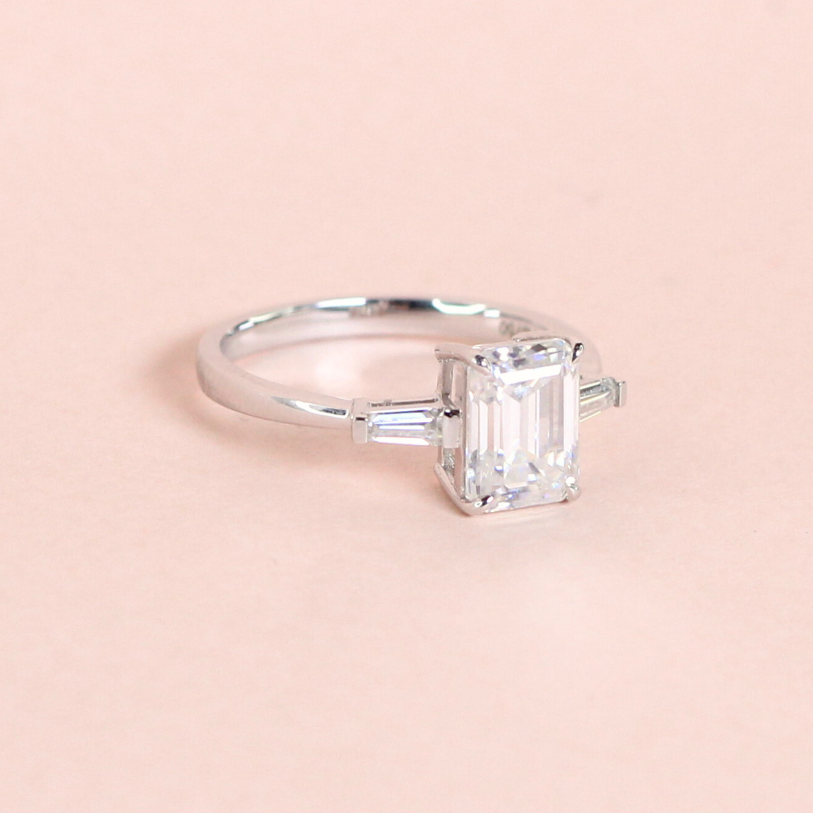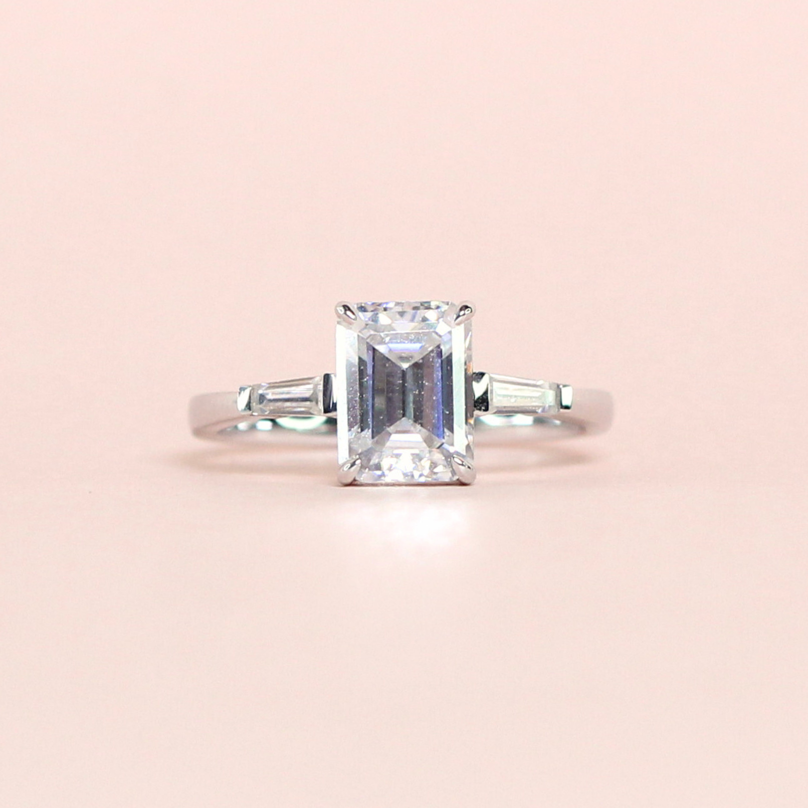 2.15cts Emerald cut Trilogy Moissanite Ring