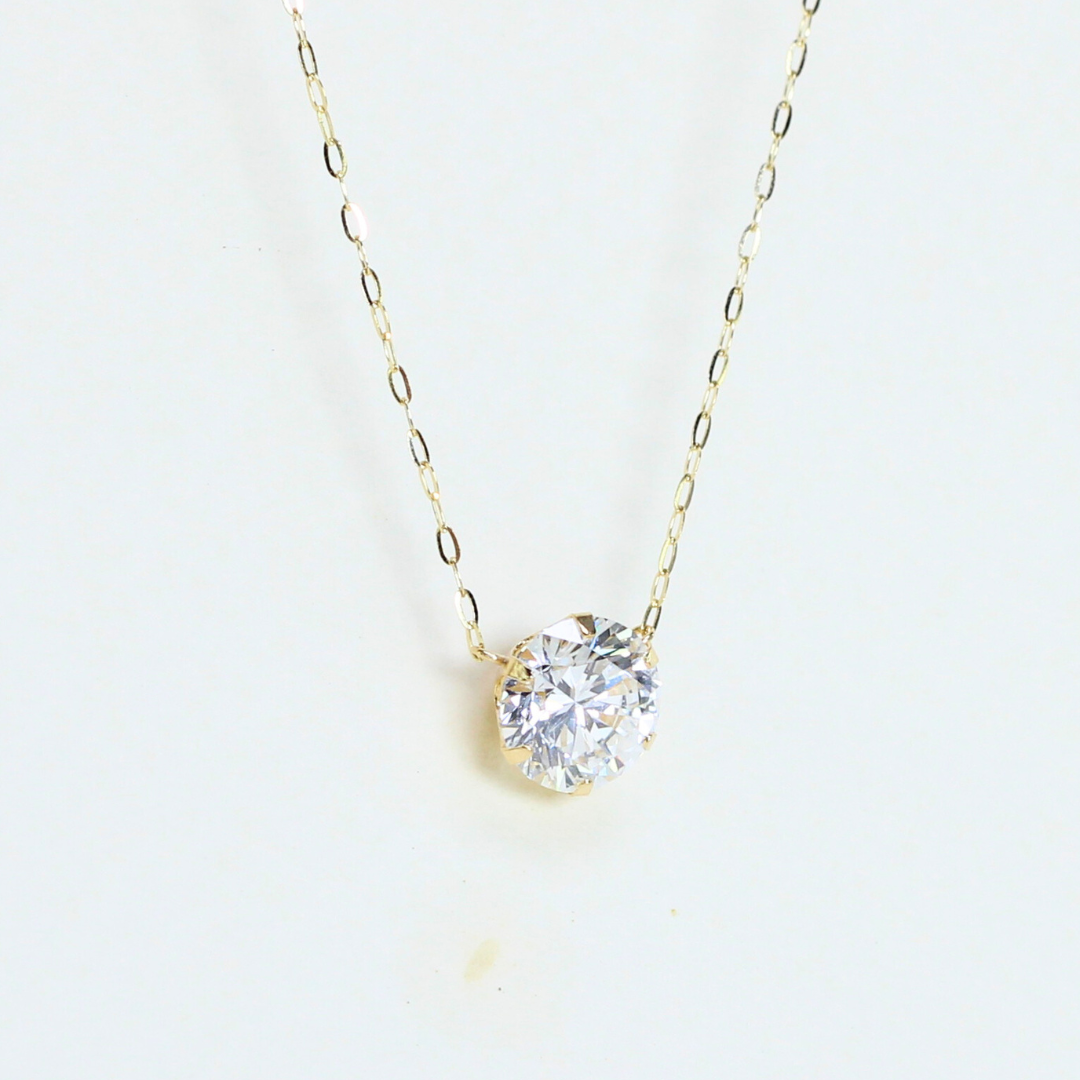 This round solitaire necklace highlights a single, perfectly proportioned center stone suspended in a sleek setting.
