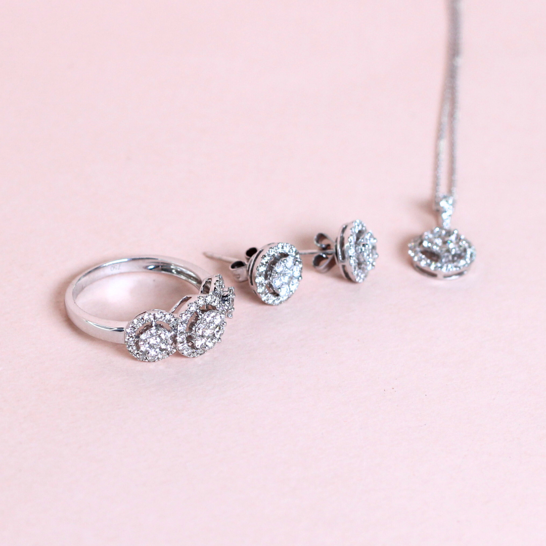 A dazzling 2ct round illusion-set pendant framed by a shimmering halo, complete with a matching chain for effortless elegance.