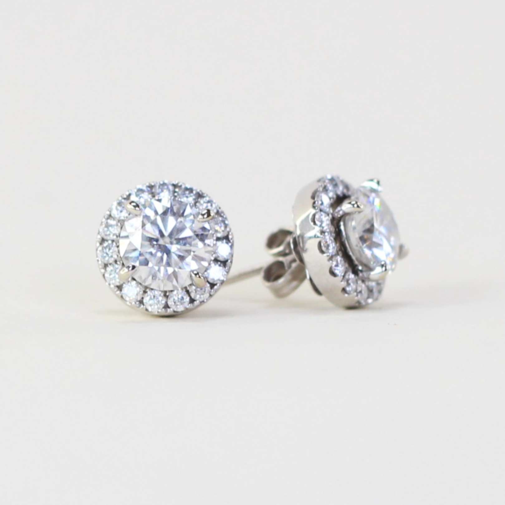 2cts Round cut Solitaire Stud earrings with detachable halo