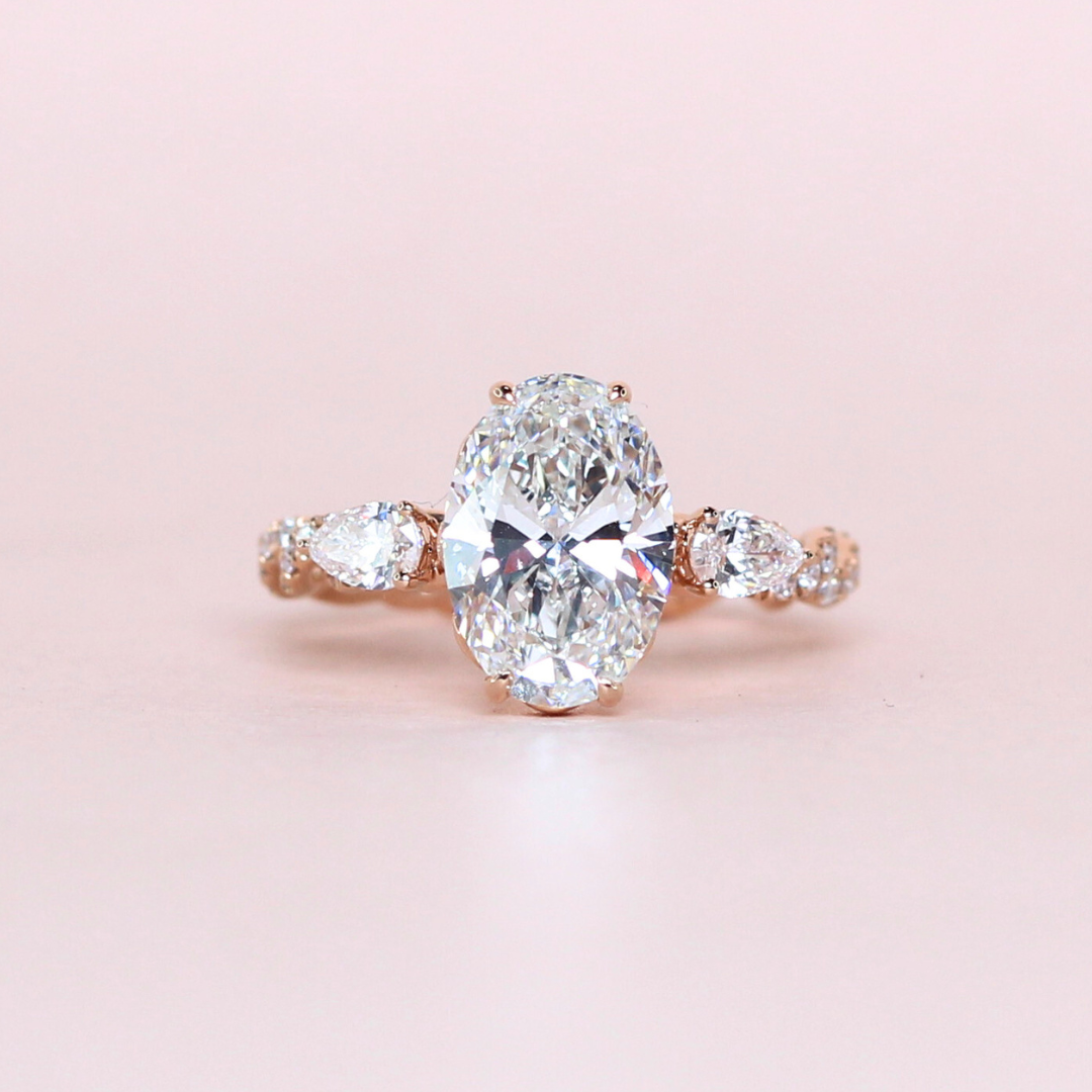Exuding timeless elegance with a modern twist, "The Livermore" features a breathtaking 3.52-carat oval lab-grown diamond, set on a beautifully crafted twisted band. The oval center stone, known for its elongated silhouette and exceptional brilliance, is carefully set to maximize light reflection, creating a captivating sparkle from every angle.
