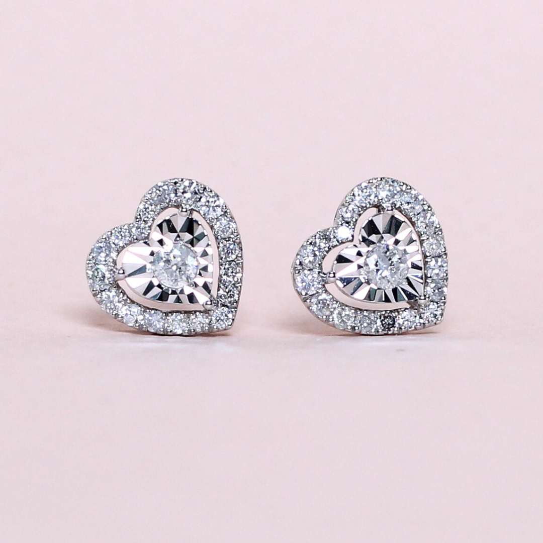 Each earring features a captivating heart-shaped gemstone, typically weighing .50cts. This iconic shape adds a playful yet elegant touch, making the earrings a perfect expression of sentiment.