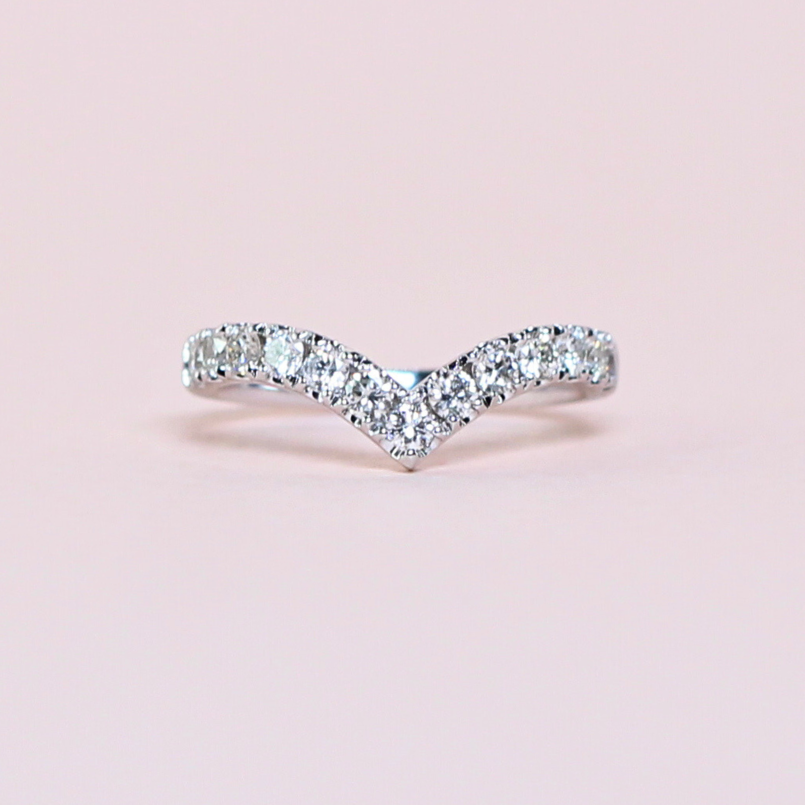 A unique take on the classic wedding band, the deep V is perfect fit for a high set engegement ring.
