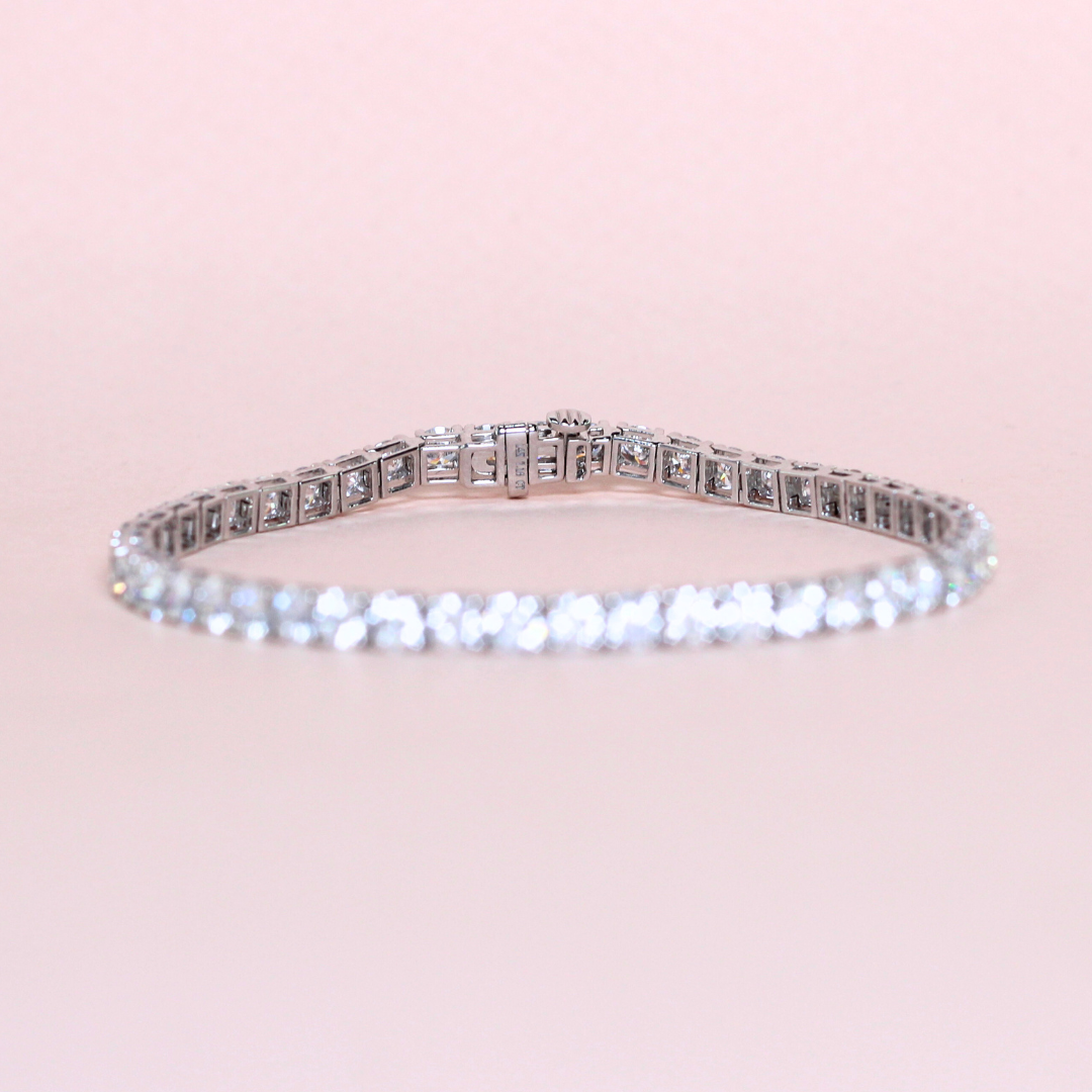 Experience a fusion of modern sustainability and timeless luxury with "The Estes," a breathtaking 7.16-carat lab-grown tennis bracelet. This exquisite piece showcases a continuous line of brilliantly crafted lab-grown diamonds, each meticulously selected for their clarity and fire, creating a dazzling display of sparkle and sophistication.