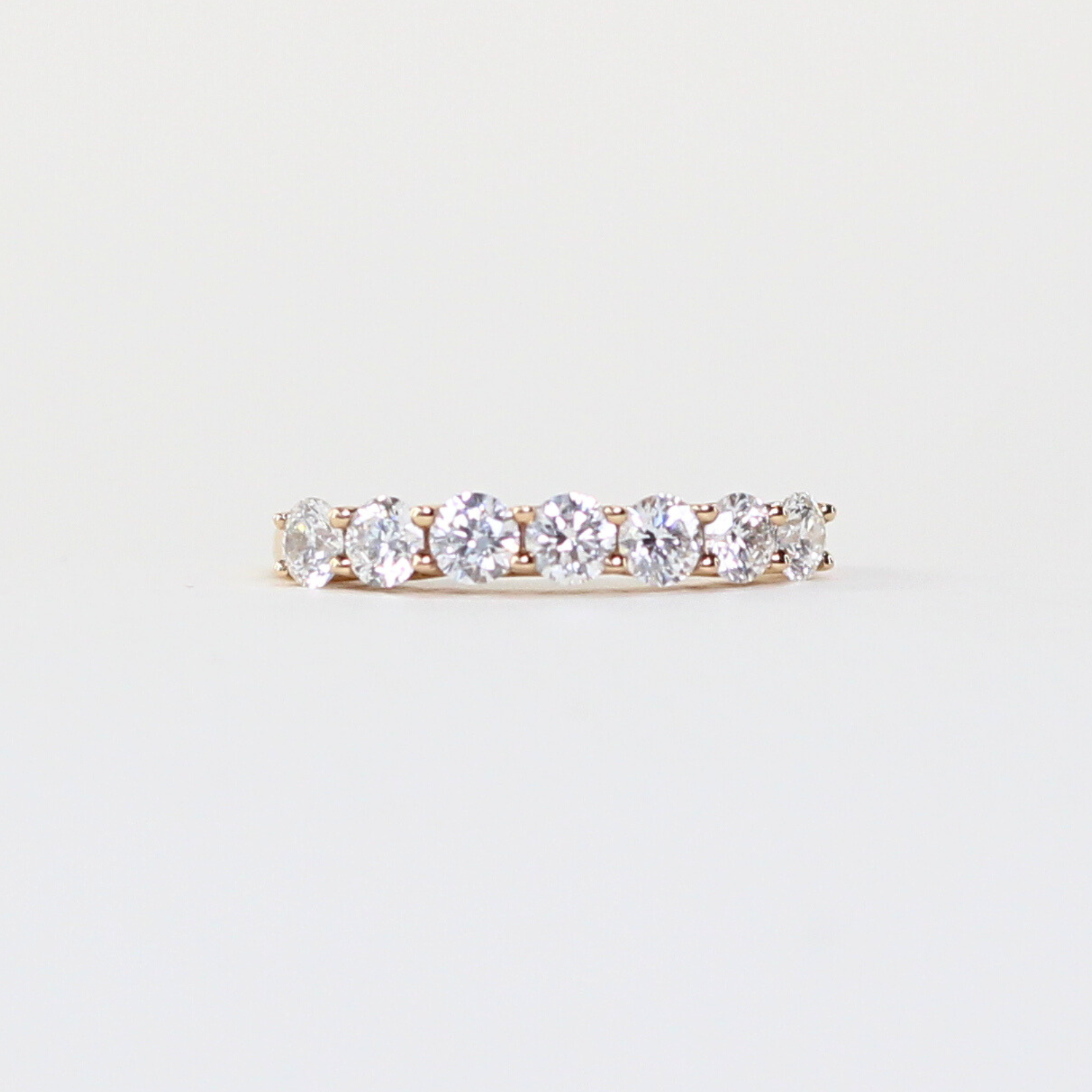 Symbol of long lasting love and commitment. This ring features 7 round diamonds for a continuing love.