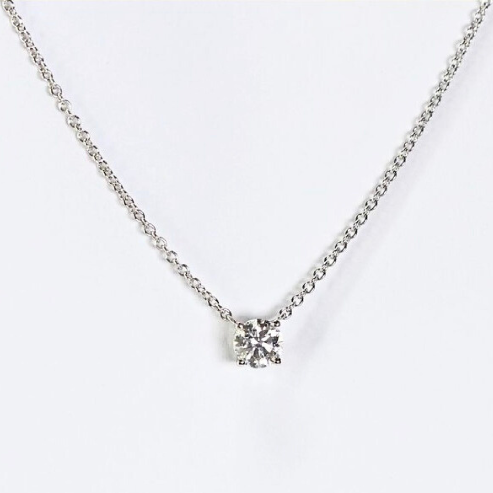 Dainty and classic. This necklace features a solitaire round brilliant diamond for a simple and elegant look.
