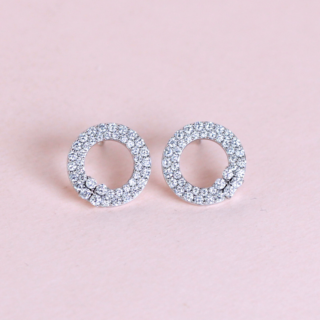 A delicate yet striking pair that combines timeless design with modern elegance. Featuring a cluster of lab-grown diamonds arranged in a graceful wreath pattern, these earrings create a radiant sparkle, perfect to highlight the brilliance of sustainable diamonds for both everyday wear and special occasions.