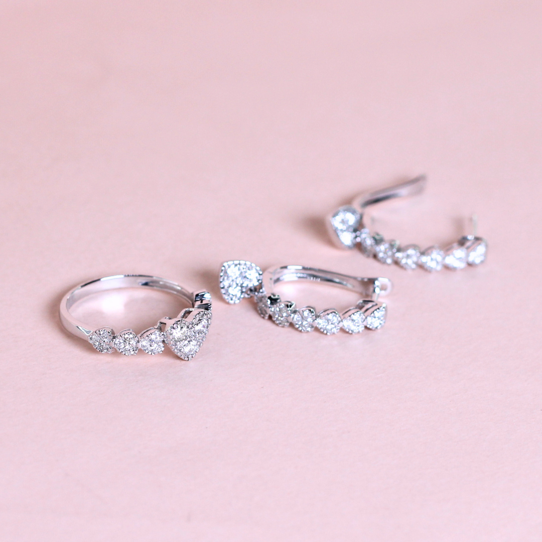 Romantic and graceful, this .95-carat Heart Illusion Dangling Set is designed to capture the beauty of love in every detail. Featuring heart-shaped illusion diamonds that dance with every movement, the set combines elegance and sparkle in a timeless silhouette.
