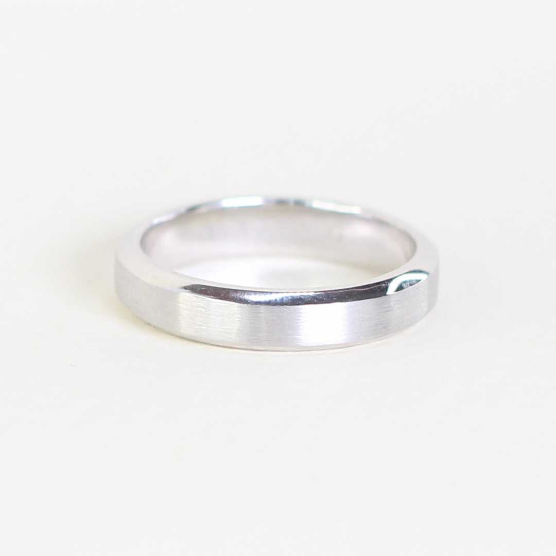 Step into timeless style with our Beveled Edge Satin Finish Ring, designed for effortless refinement.