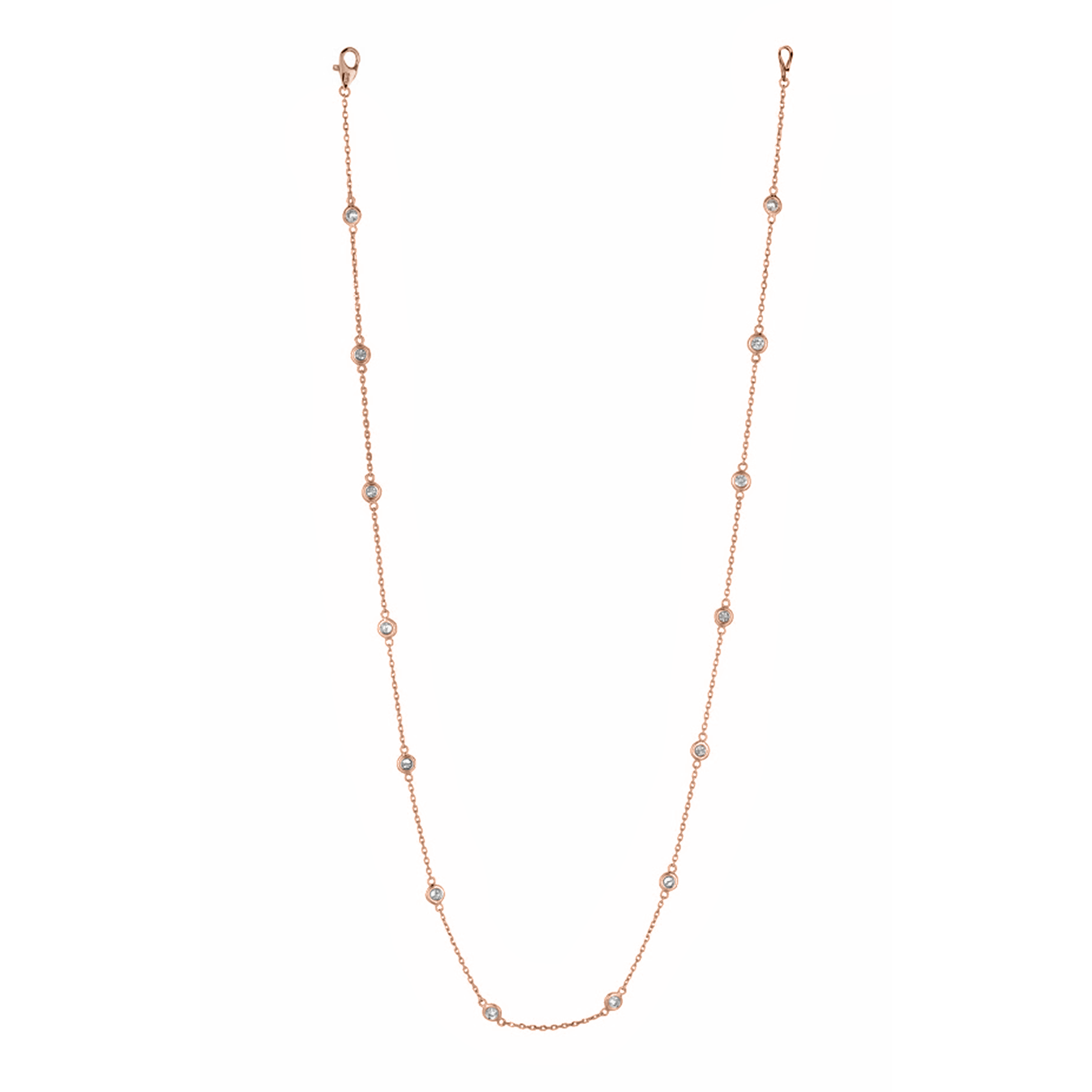 With the diamonds sitting along a 24" gold chain, this necklace is a versatile jewelry piece that can be worn solo or as part of a beautiful neck party.