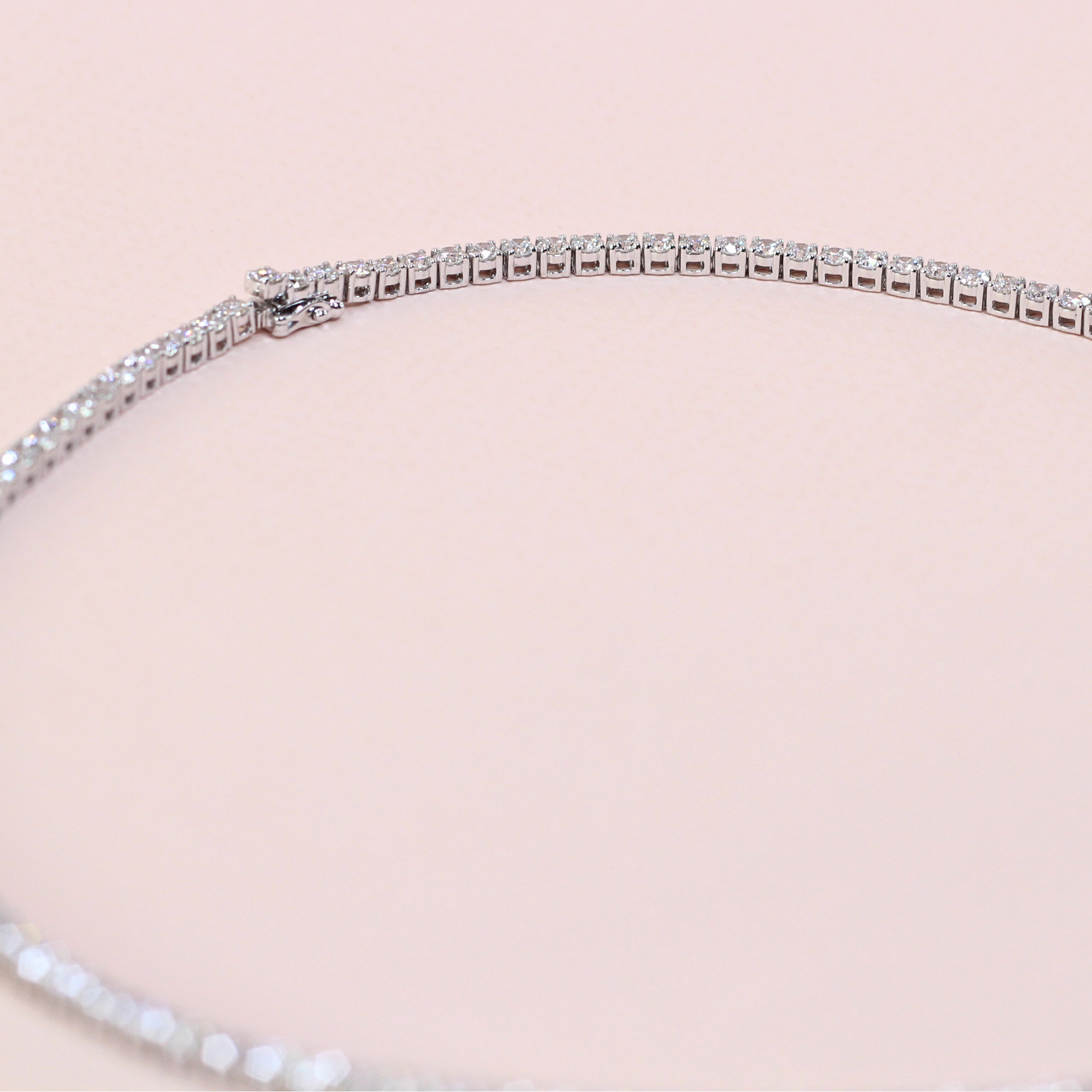 A unique take on the classic tennis necklace. This features a drop design that gives an elongated look to accent the neck.