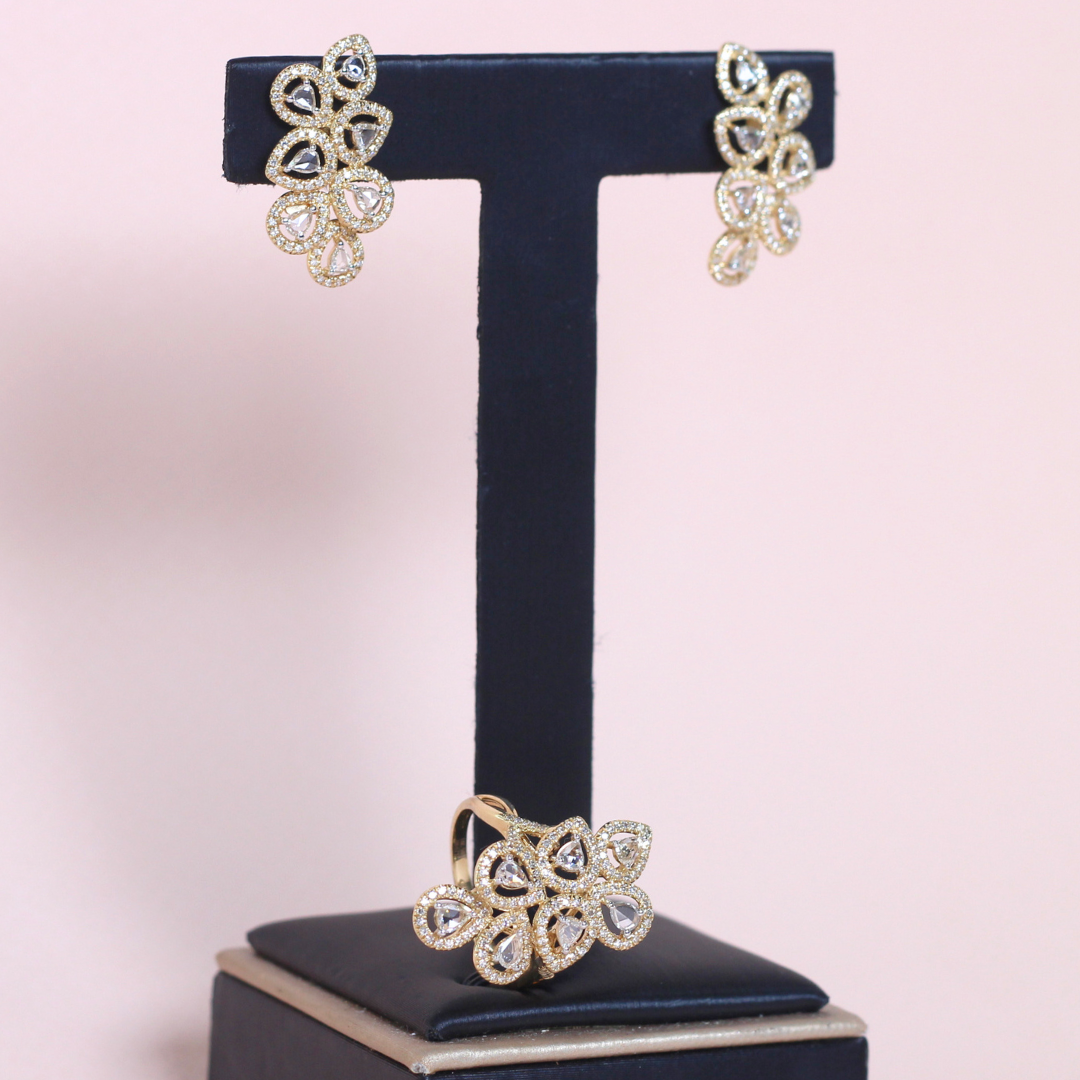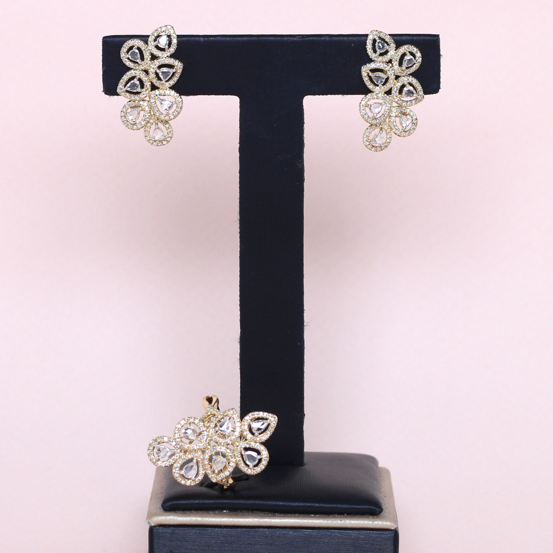 This Leaf Diamond Statement Set is a breathtaking set collection that merges the beauty of nature with the elegance of specially cut diamonds. Its intricate design and luxurious materials create a statement piece that is fashionable and unique, making it a perfect choice for those looking to express their style with grace.