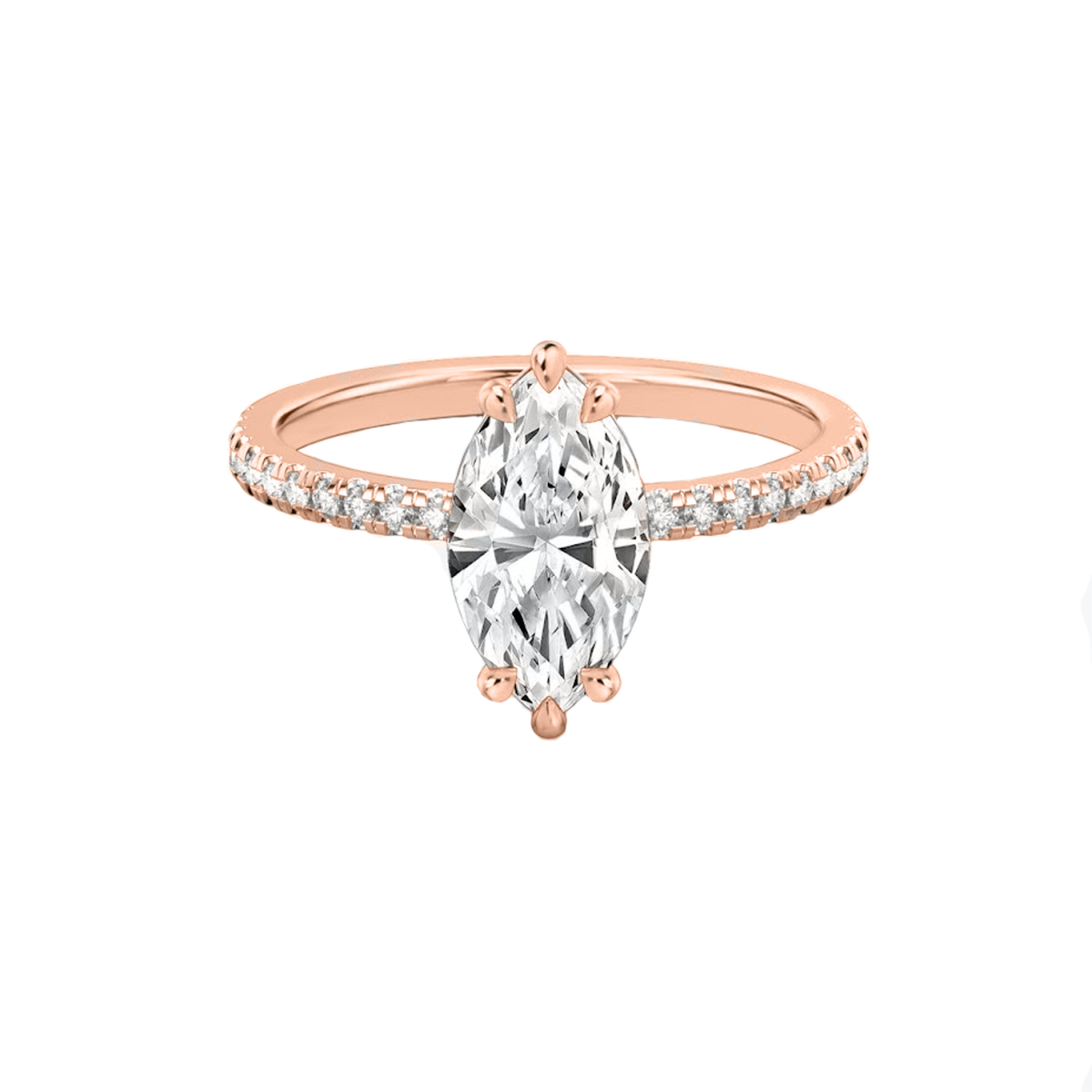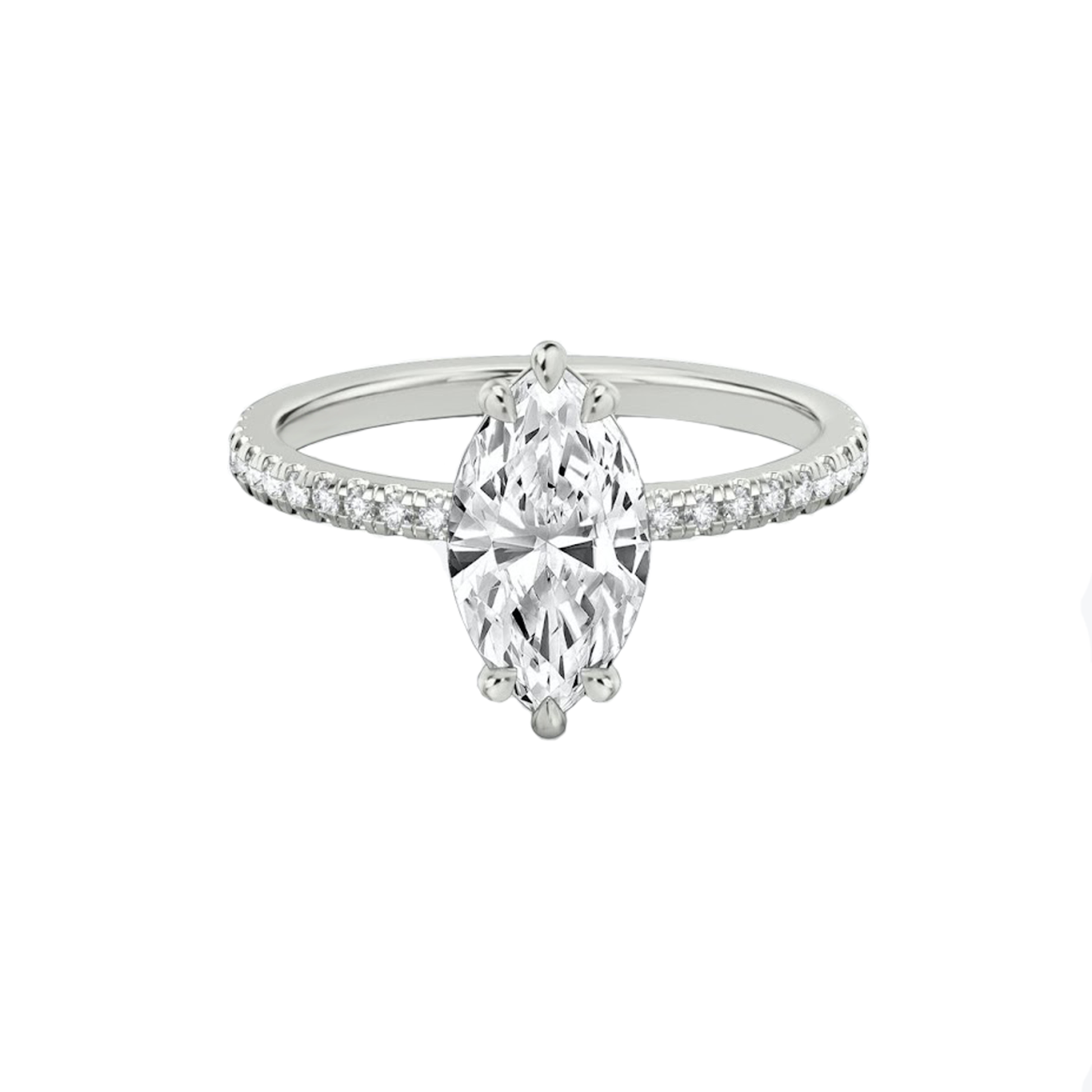 Marquise shapes are often associated with a creative and theatrical personality. Because of their long and narrow shape, they can also create the illusion of greater size. It is sure to behold extraordinary character and plenty of sparkles.