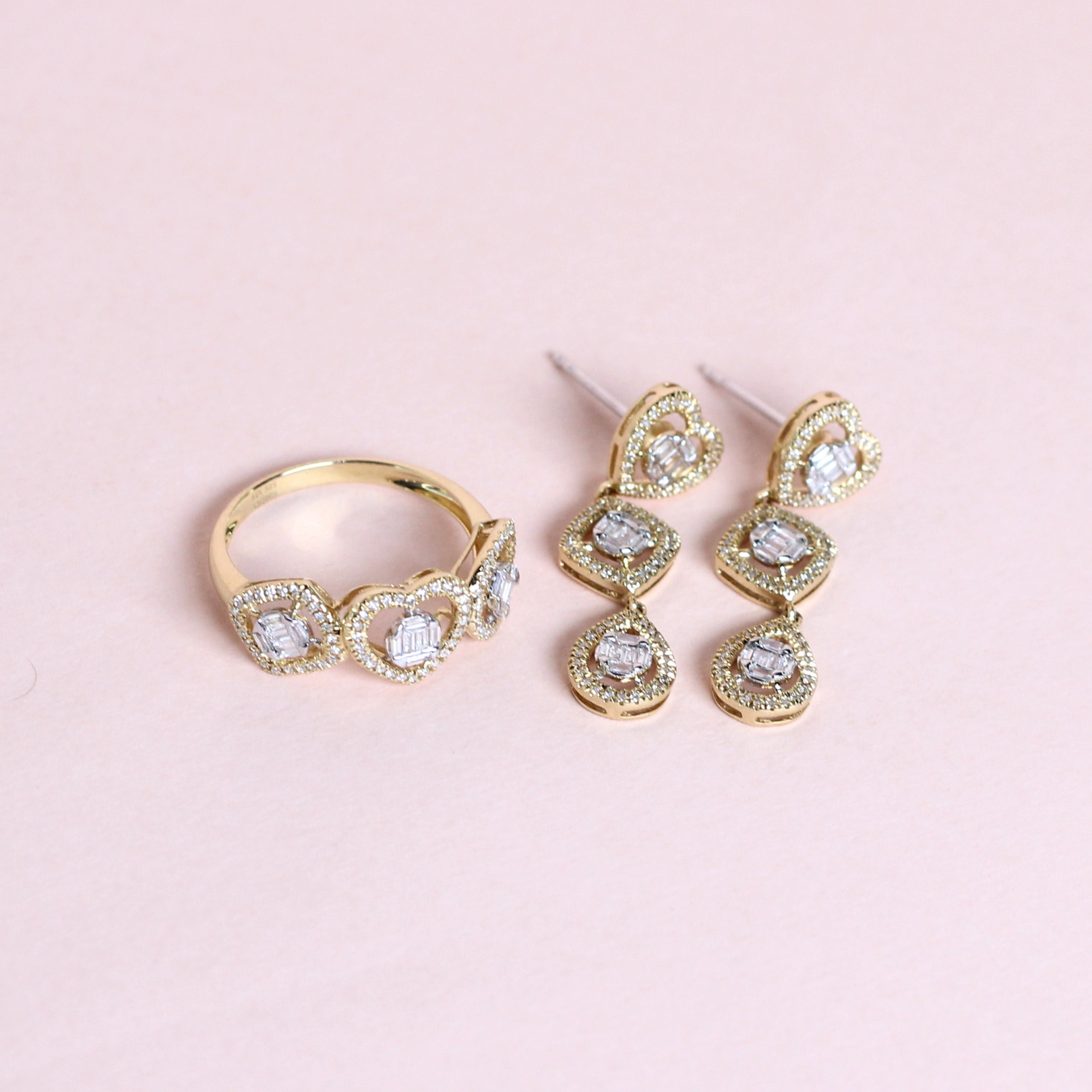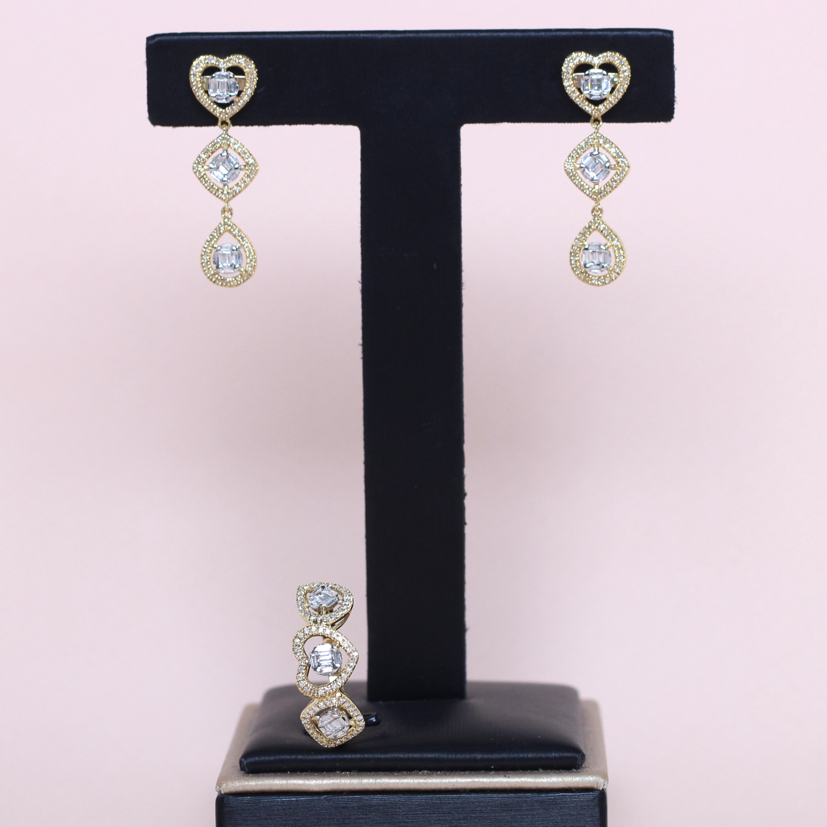 Immerse yourself in the dazzling beauty and versatile elegance of our Multi-shape dangling set. This exquisite jewelry set features a captivating combination of various diamond shapes, arranged in an illusion setting to enhance their brilliance and size. The dangling design adds movement and grace, making this set a stunning addition to any jewelry collection.